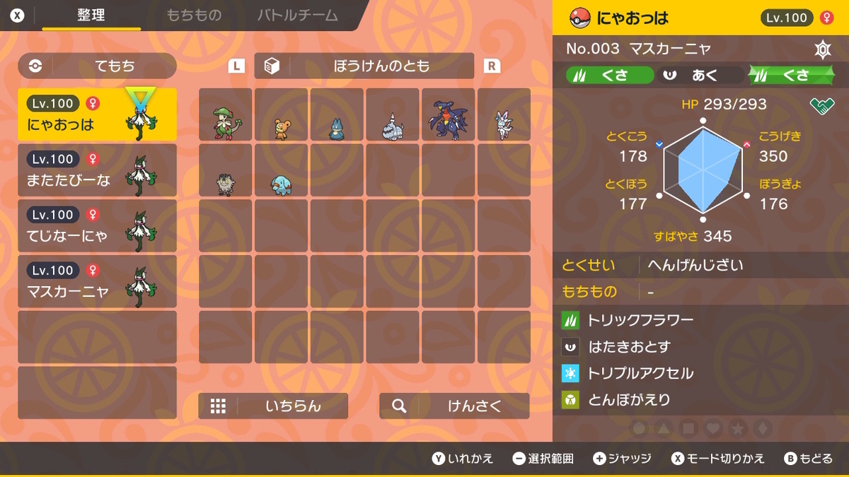 ってことで、計4体になった育成済みマスカーニャの紹介でした。