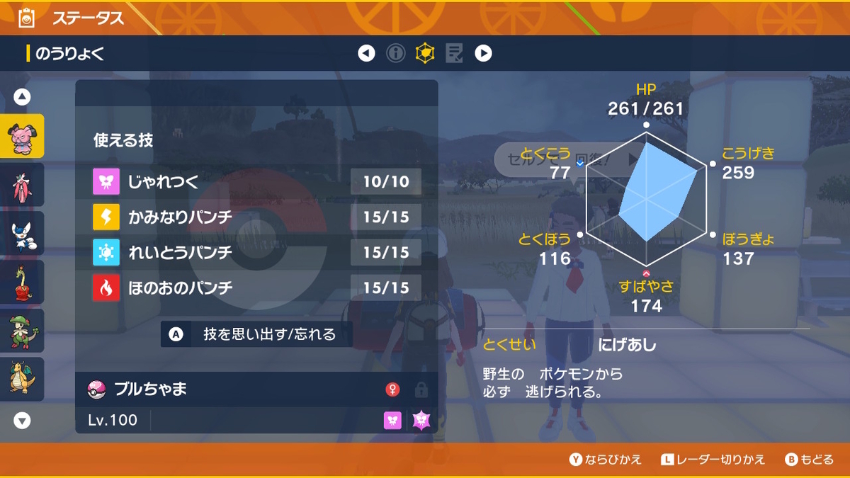 特性は「にげあし」です。旅パでの「にげあし」ってなかなか優秀。