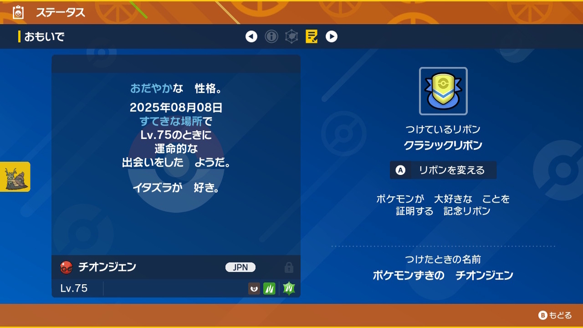 リボンはこちら。配布ポケモンがよく持っているやつですね。