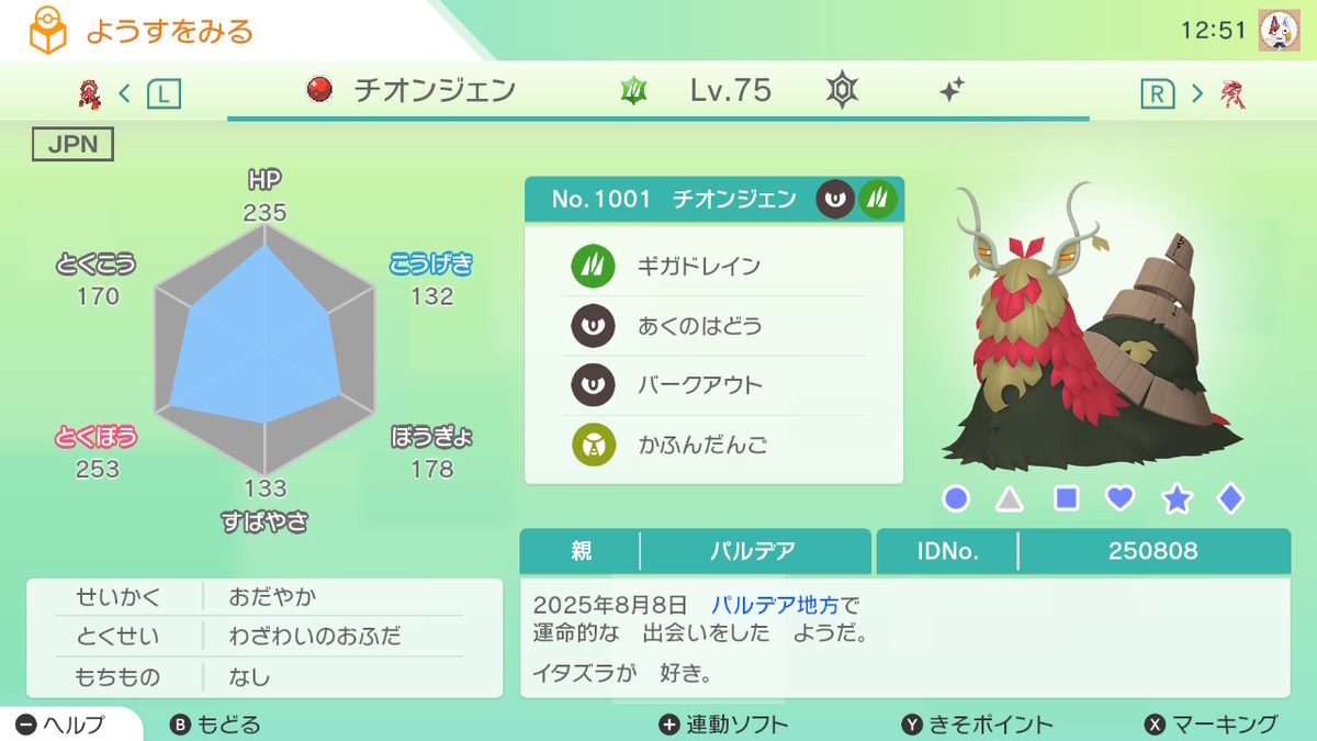 実は通常色のチオンジェンもこっちに預けっぱなしで、まだ育てていないんですよね。