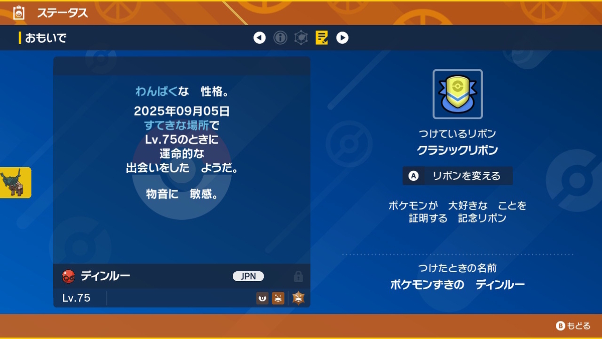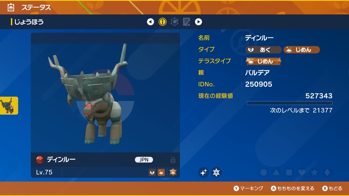 てことで、妙に設定が怖いディンルーの色違いをゲットしました。